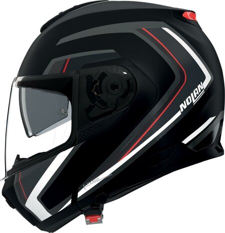 De Nolan N100-6 motorhelm is volledig voorbereid voor het N-com communicatiesysteem.