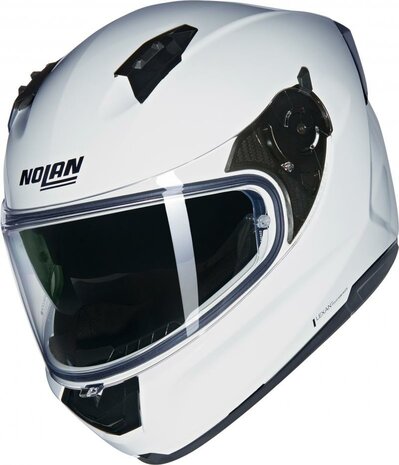 De Nolan N60-6 is een mooie motorhelm voor op de weg, maar heeft sportieve eigenschappen. Deze helm voldoet aan de ECE 22-06 keuring. Het grote voordeel hieraan is dat er 2 verschillende helmschalen zijn. De Nolan N60-6 is een helm gemaakt van polycarbonaat. De helm is voorzien van een grote vizier opening waardoor je optimaal zicht hebt tijdens het motorrijden. Een ander voordeel is de eenvoudig te bedienen snelsluiting. Uiteraard is deze helm voorzien van een Pinlock vizier, zodat je geen beslagen vizier hebt. Een zeer goede ventilatie, in hoogte te verstellen zonnevizier maken het rijden met de Nolan N60-6 geschikt voor warme motordagen. De binnenvoering is gemaakt van milieuvriendelijke materialen en zorgt voor een optimaal klimaat in de helm. Brildragers merken extra comfort omdat er in de binnenvoering een uitsparing is gemaakt voor de poten van de bril. De voering is tevens uitneembaar en wasbaar. De Nolan N60-6 is een helm met een fijne pasvorm en zorgt voor comfortabel motorrijden. Wij adviseren u graag met uw helm, want een goed passende helm is een must voor iedere motorrijder. U bent van harte welkom in onze winkel in Zeist. Ons team staat 6 dagen per week voor u klaar.